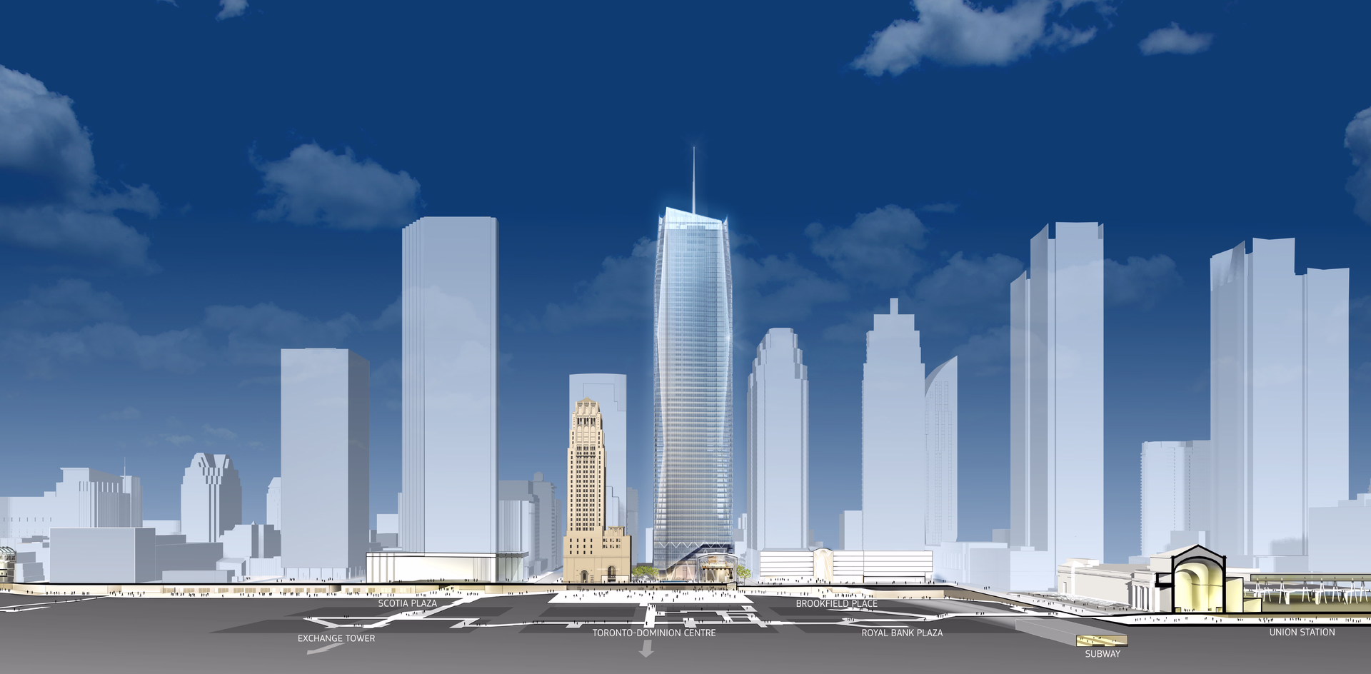 The Commerce Court 3 master plan aims to transform this historic Commerce Court property at 191 Bay Street in the heart of Toronto's Financial District and develop a new, 64-storey mixed-use office building at the southeast corner of the site. The new East Tower ("CC3") will add approximately 1.8 million square feet of first-rate office space to the downtown core, substantially strengthening the city's employment base and supporting thousands of jobs within Toronto. CC3 will be directly connected to the city's underground PATH network and nearby rapid transit services in an area with significant pedestrian traffic, existing retail, and office development.