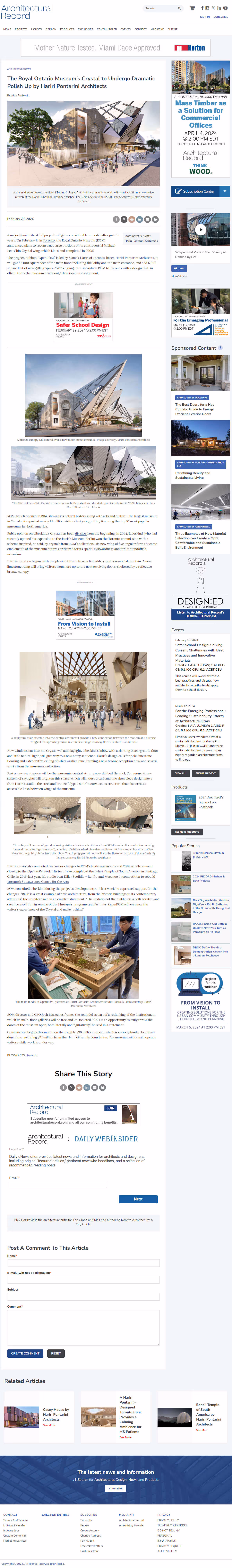 Architectural Record: "The Royal Ontario Museum’s Crystal to Undergo Dramatic Polish Up by Hariri Pontarini Architects"