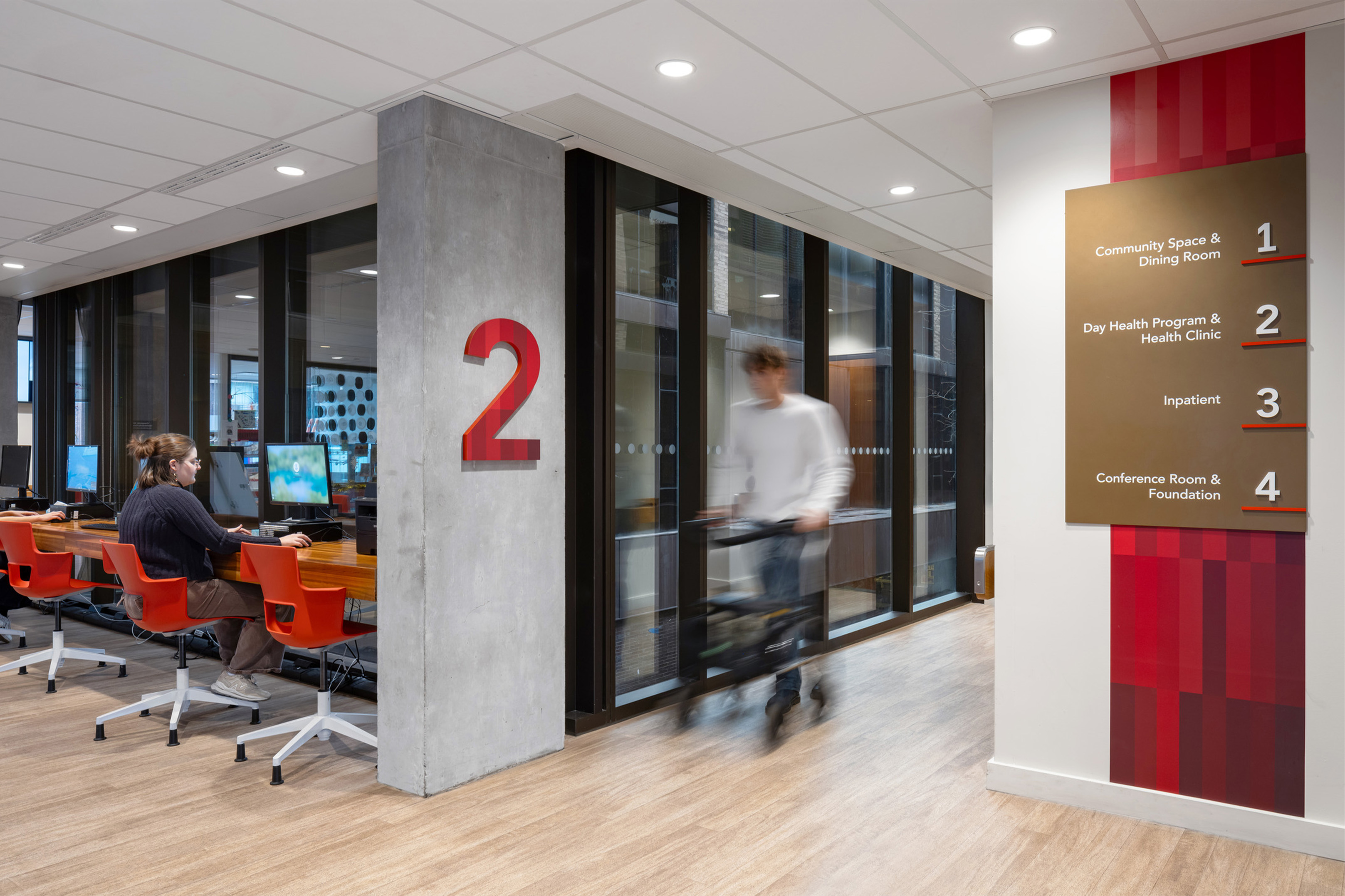The renovation and extension to Casey House, a specialized healthcare facility for individuals with HIV/AIDS, meets the needs of patients and healthcare providers in a setting designed to evoke the experience and comforts of home. With a new Day Health Program servicing a roster of 200 registered clients and 14 new inpatient rooms, the 59,000-square-foot addition brings much-needed space and modernized amenities to augment and renovate the heritage-designated Victorian mansion. The new structure embraces the existing building, preserving its qualities and organizing the day-to-day user experience around a new landscaped central garden court.