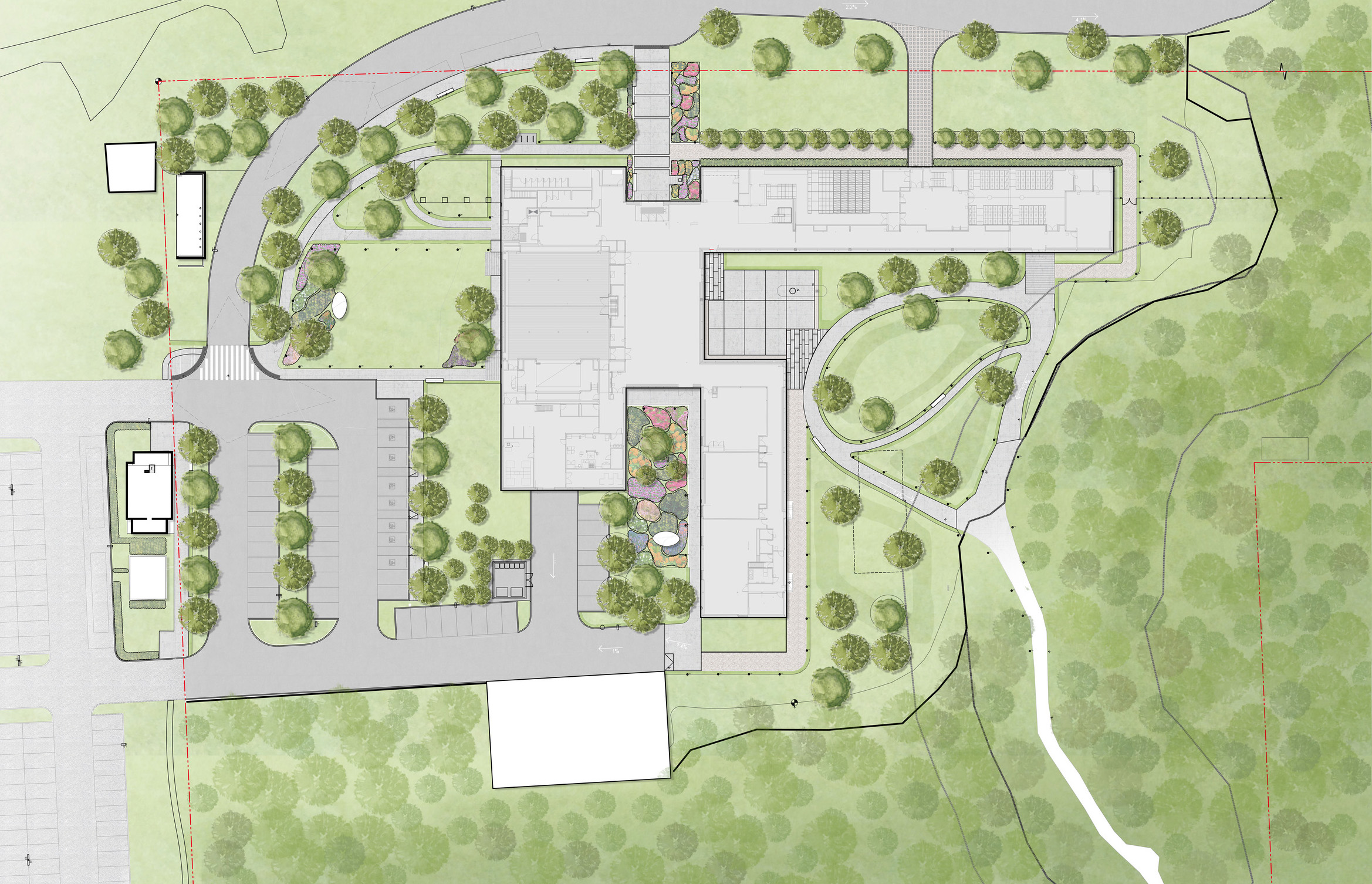 This public facility is perched on the edge of a ravine, designed to be sensitive to the natural ecology of the site while opening views to adjacent forests and stormwater gardens. The building connects various environmentally controlled programmatic spaces around a fully accessible central spine bathed in natural light. The east and south wings house three galleries, collections storage and vaults, a conservation lab, a quarantine room, a heritage resource centre, and municipal archives. These programs are arranged around a landscaped court that opens and connects to the ravine’s natural ecology. To enhance community engagement, the building features a multipurpose flat floor events and performance hall with retractable seating and staging that can be divided into two distinct areas. Versatile back-of-house support spaces with staging, loading, and a catering kitchen support all programmatic requirements.