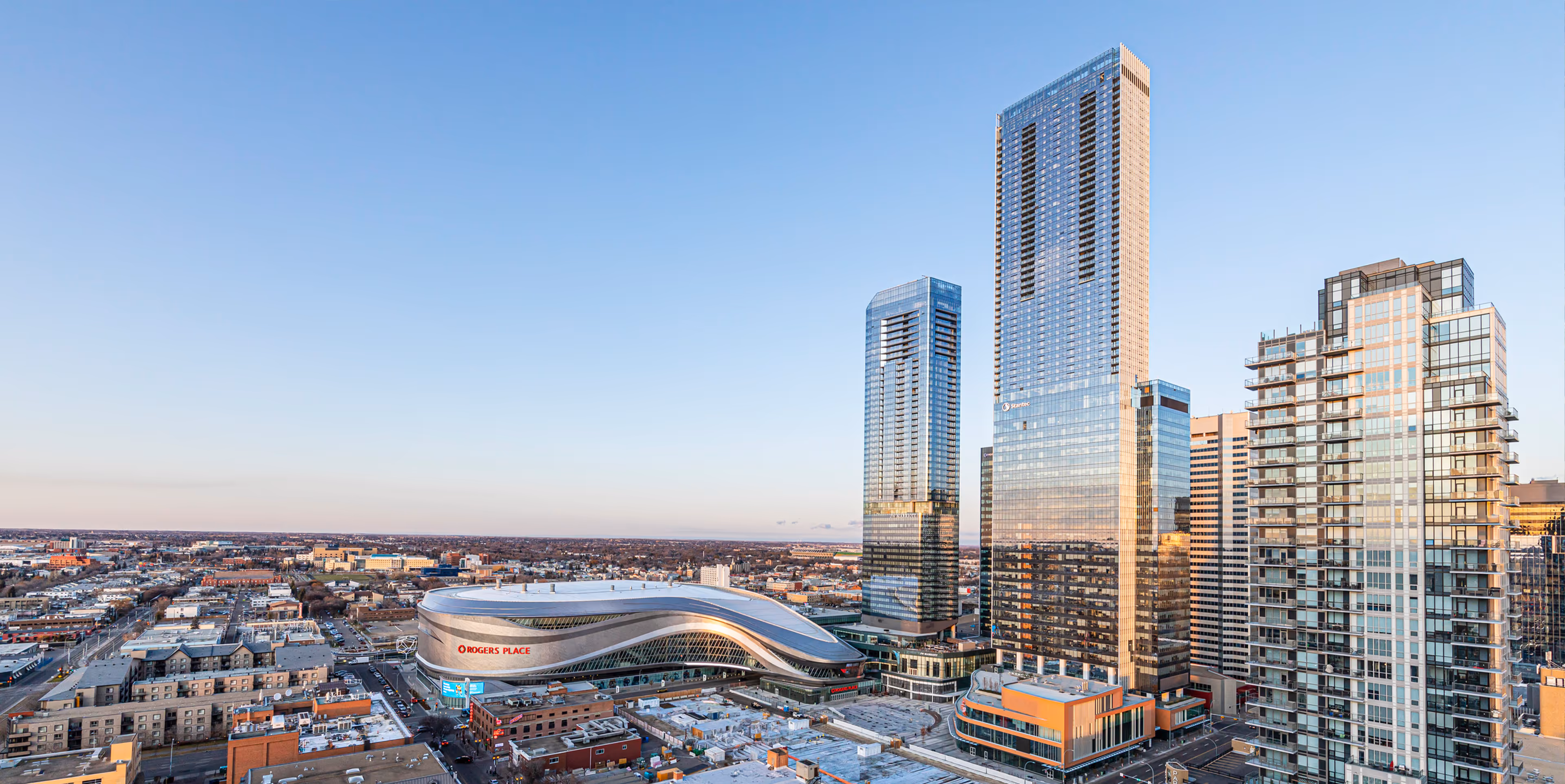 The Edmonton ICE District offers a new vision of urban value in the heart of downtown Edmonton. This major revitalization effort relocates the home of the Oilers NHL hockey team to the city centre and includes new retail and commercial space, a hotel, two 33-storey residential towers, and significant public realm amenities to serve the greater Edmonton population. To encourage and enhance walkability, the master plan leverages existing thoroughfares and a nearby LRT station. It provides promenades, vehicular and pedestrian access points, and a new central public plaza overlooked by amenities selected to attract a diverse mix of users—day and night, year-round.